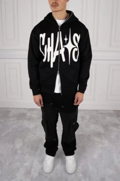 Chaos Puff Print Double Zip Hoodie – Black(New Aw23 Chaos Puff Print Double Zip Hoodie Black)