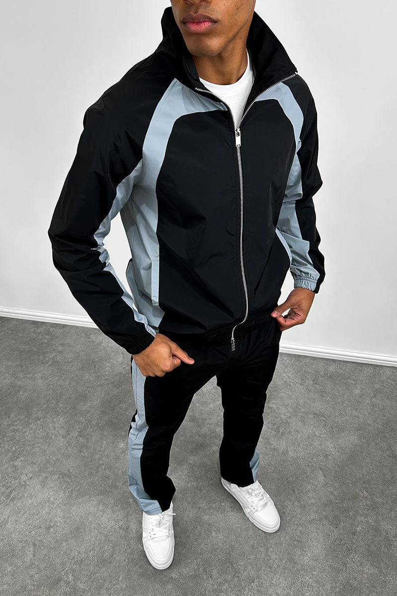 Nylon Track Jacket – Black/Pale Blue