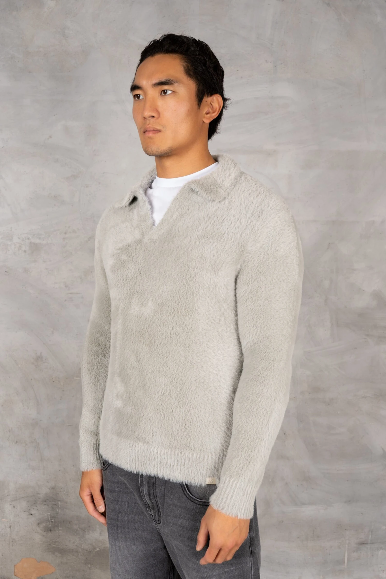 Open Neck Mohair Polo Pullover
