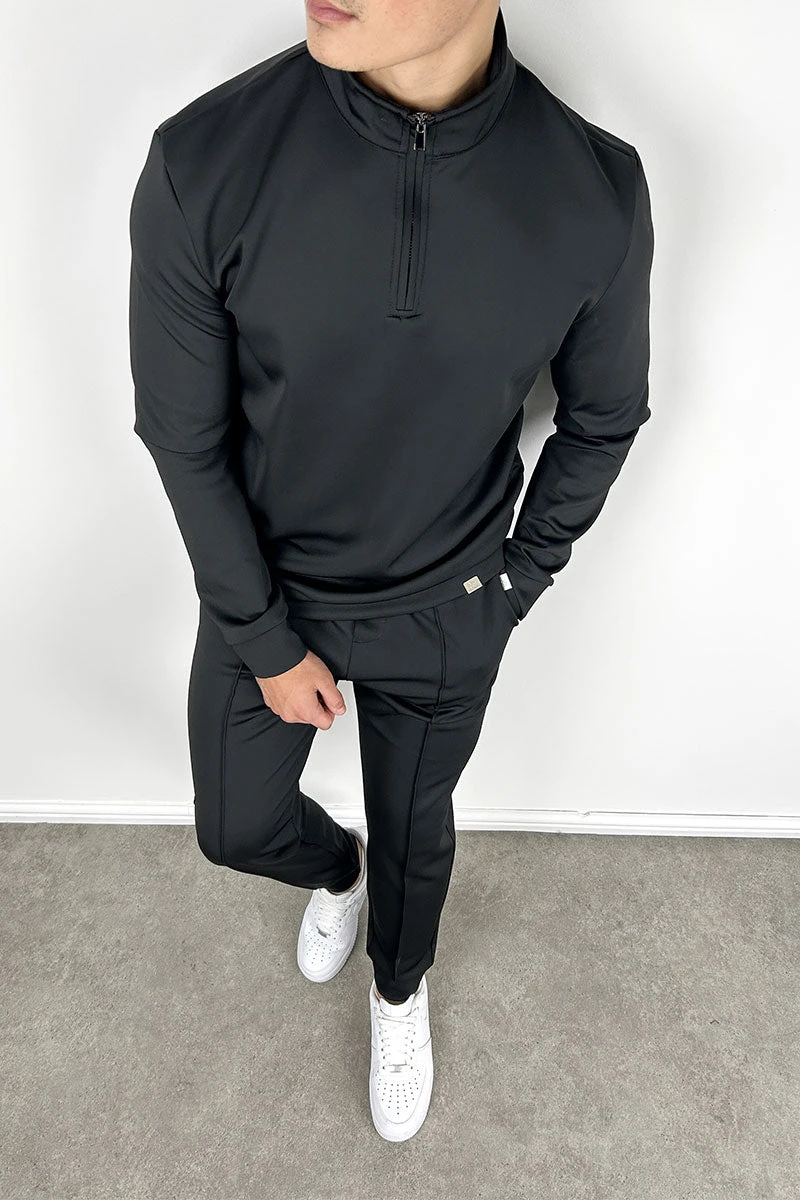 Essential Zip-Up Hoodie – Black(New Day To Day Zip Up Straight Leg Full Tracksuit Black)